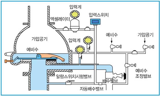 ⑵ 헤드 개방 시 2차측 가압공기(압축공기) 압력이 낮아지면 급속개방장치가 작동하여 클래퍼를 신속히 개방 시킨다.